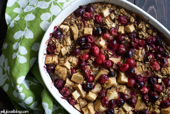 Baked Oatmeal with Cranberries, Apples and Cinnamon