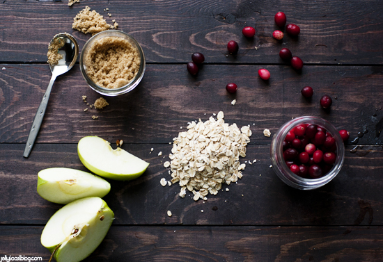 In my goals for the New Year, I decided to tackle my sad little breakfast routine and turn it into something great – at least once in a while.Fighting my lazy morning ways, I decided that I would try my hand at my own version of baked oatmeal. For me to love oatmeal, it needs to be packed full of fruit. And some sweet stuff. I am still overloaded with frozen cranberries from the holidays, so throwing some of them in was a no-brainer and the apples came as a natural next step. The whole thing gets sweetened with brown sugar and a bit of cinnamon. I even threw in some ground flax seeds for added nutrition and fiber. Healthy of me, huh?