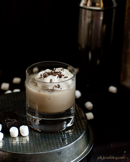 So for the past few weeks now I have been ‘recipe testing’ with this amazing bottle of marshmallowy goodness. I came across a ‘dark and fluffy’ recipe that sounded promising and decided to throw in some Peppermint Mocha Kahlua to make it even more decadent – and boozy. Plus, I am in a serious courtship with mint and coffee, so really this is my idea of the perfect little cocktail. Garnish it with a bit of whipped cream, mini marshmallows and shaved chocolate and you’re in business.