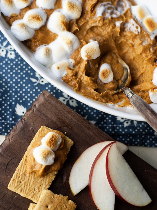 Several years ago, my sister made this baked, marshmallow-y topped pumpkin pie dip. I couldn’t exactly keep my hands off the stuff. She served it with graham crackers and apple slices and let me tell you, it was like pumpkin pie and sweet potato casserole (you know, because of the mallows) teamed up to create this wonder dip.
