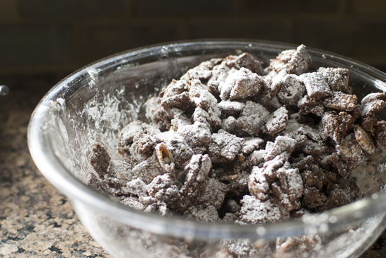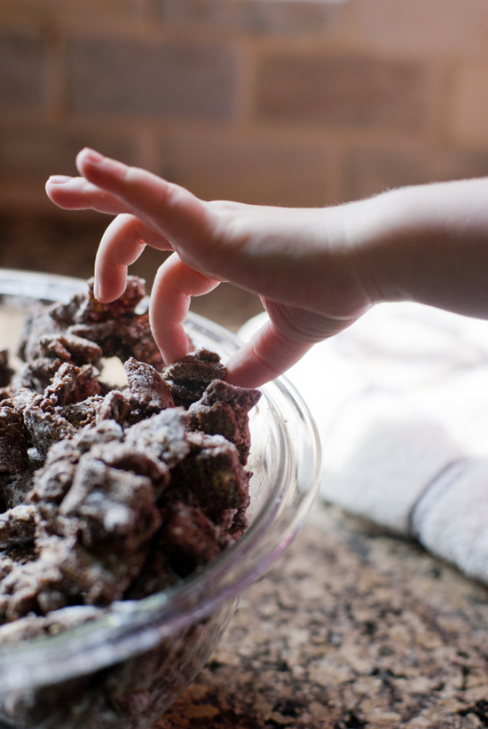 Last night, the kiddies and I decided to whip up a little ‘night before the first day of school’ treat. It was so easy, and so completely addicting that I have to share it with you. It’s an old classic that I grew up with called Puppy Chow. Here’s what to do: