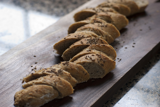 I have no idea what these used to be called but my mom has been making these delicious bites for as long as I can remember. Our family has just gone to calling them Cucumber Ryes. Which is pretty fitting because they feature a crisp slice of cucumber atop a bed of soft, creamy cheese spread onto a hearty piece of rye bread. In my version I swapped out the traditional cream cheese for goat cheese as it adds a bit more tang. Plus, I happened to have it in my fridge. I also have been playing with homemade rye bread from the book Healthy Breads in Five Minutes a Day by Zoe Francois and Jeff Hertzberg. It’s one of my favorite cookbooks and if you have ever toyed with the idea of making bread at home I cannot recommend it enough. It’s easy and involves no kneading. I know. Those statements don’t usually accompany at-home bread making. If you have no interest in making your own rye bread (don’t worry, you will get no judgement from me!) pick up a loaf of the mini party rye bread and you will be in business. Either way, this is a hard recipe to mess up, so give it a try and let me know what you think!