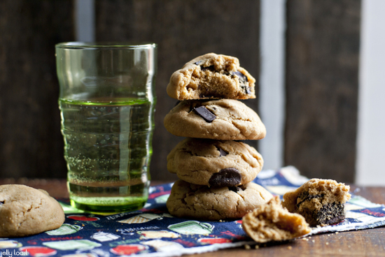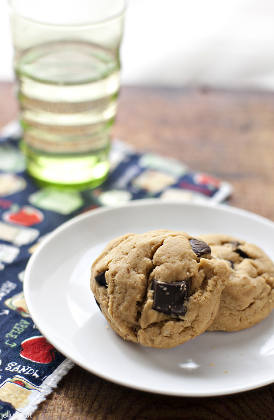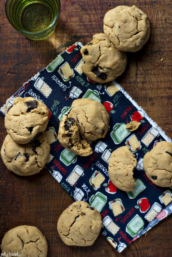 Well, that’s not entirely true. These cookies are a classic and nostalgic (just like most of my movies) peanut butter and chocolate chip type of cookie, but I replaced the peanut butter with my current bff peanut butter alternative, Wow Butter. Now, you could probably use Biscoff spread with great success and really, a cookie made from cookies would be an awesome thing. I think I know what I’ll be making later.